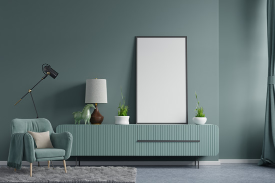 Traffic Count Dark Green Wall in Living Room Interior
